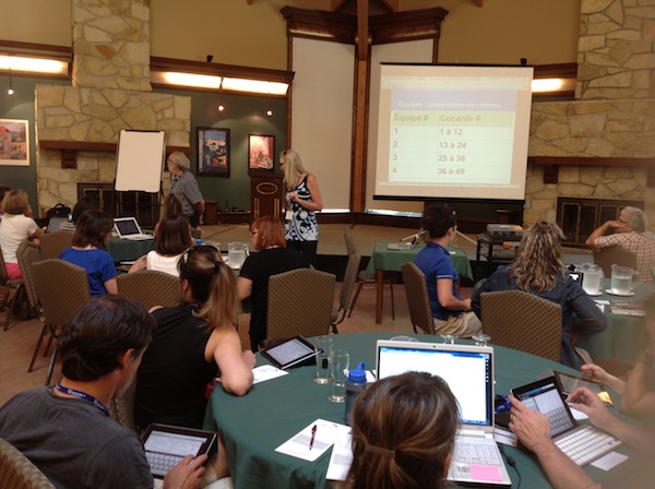J’ai eu le privilège, pour la deuxième année consécutive, d’animer le volet TBI du Camp TIC de la Fédération des établissements d’enseignement privé. Les autres volets étaient animés par les fantastiques et généreux animateurs RÉCIT de la FÉEP, Karine Thonnard (médias sociaux) et Claude Frenette (tablettes mobiles), auquel est venu prêter main forte le répondant TIC du Collège de Montréal, Sébastien Wart (il faut dire qu’il y avait un très grand intérêt pour tout ce qui touche la mobilité). Pendant deux jours et demi, près de 50 enseignants venant de Chicoutimi jusqu’à Gatineau se sont rassemblés pour apprendre, développer leurs compétences professionnelles et échanger autour de la technologie.