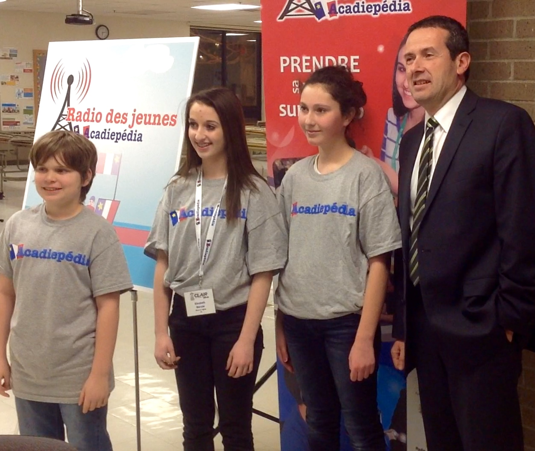 Au centre de l’école se trouve la console de la radio des jeunes Acadiepedia. Très souvent dans la journée, les jeunes empoignent le micro et annoncent la météo, le titre de la prochaine chanson, ou encore interviewent un visiteur. Jeudi soir, le ministre de l’Education du Nouveau-Brunswick a fait une visite à l’école. En entrevue avec les jeunes, il a vulgarisé les tâches d’un ministre de l’éducation, a confié que c’était un rôle nouveau pour lui et qu’il aimerait bien en reparler avec eux dans 4 ans, puis a conclu que c’était son entretien le plus intéressant de la journée. Il a aussi répondu, à la question « quel message aimeriez-vous donner aux jeunes? », de toujours donner le meilleur d’eux-mêmes et qu’ainsi, ils réussiront. Au C@HM, tout semble pensé pour que les jeunes aient le goût de le faire : studio de musique, radio, atelier de fabrication de bijoux, appareils mobiles, studio de tournage, salle de théâtre… Le local dans lequel on trouve les livres, ce qu’on appelle la « bibliothèque » dans une école normale, s’appelle le Centre de recherche, d’innovation et de création (CRIC). On y trouve, à côté des livres et des ordinateurs, des équipements de robotique, un coin TEDx, un établi bien garni, une imprimante 3D… Une enseignante nous confie : « Moi, je ne sais pas comment tout ça fonctionne. Ce sont mes élèves qui s’en servent! » On apprend au fil de notre visite que le directeur et son personnel ont construit de leurs mains plusieurs supports, bureaux, étagères, bref, qu’ils ont mis la main à la pâte dans l’intérêt des élèves. À côté, un enseignant d’une autre région se désole : « Chez nous, les profs commencent à 8h et finissent à 16h. Pas moyen de les impliquer dans rien. » Tout porte à croire qu’une participation à Clair leur ferait du bien!
