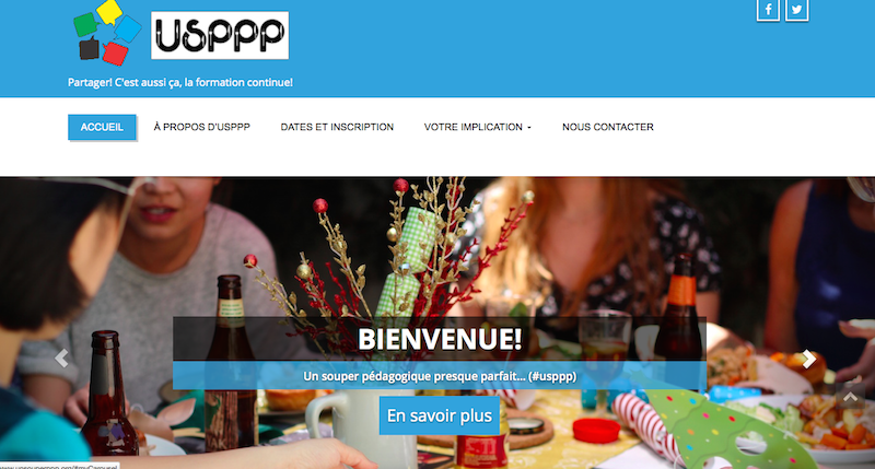 Suite à une discussion avec Pierre Gagnon en septembre dernier, j’ai offert de donner un coup de main pour déployer le nouveau visuel du site Web de l’activité de développement professionnel pour enseignants Un souper pédagogique presque parfait (USPPP), et d’aider à l’organisation et à la diffusion de l’information. C’est ce week-end que j’ai mis […]
